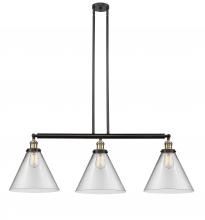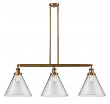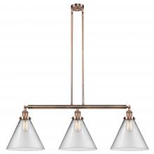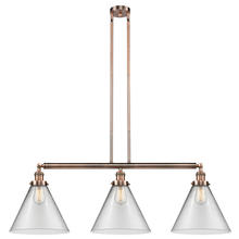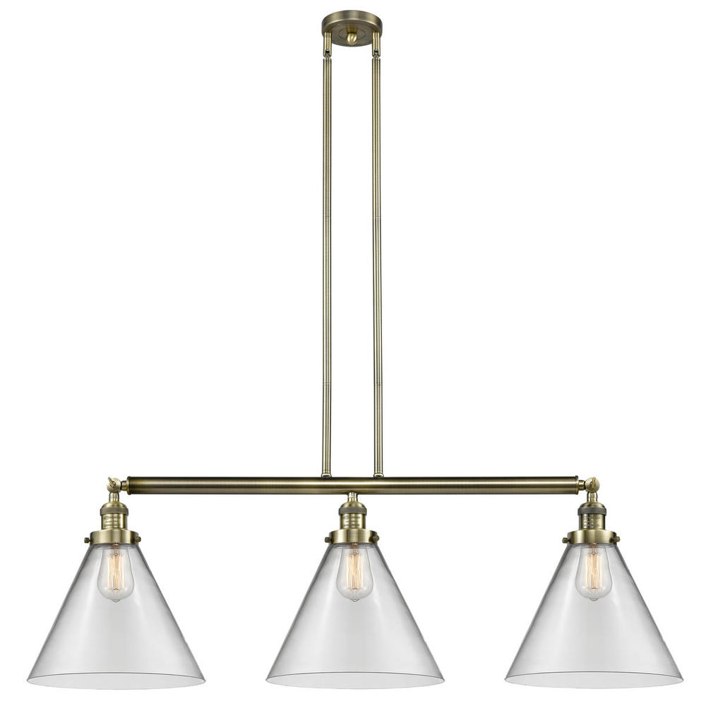 Cone - 3 Light - 44 inch - Antique Brass - Clear Shade - Stem Hung - Adjustable Island Light
