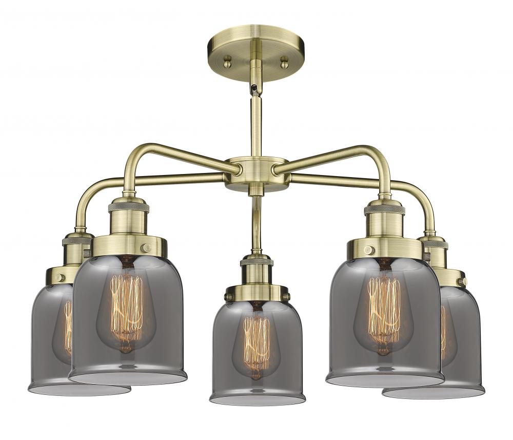 Cone - 5 Light - 24 inch - Antique Brass - Light Smoke Shade - Chandelier