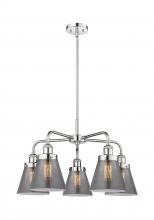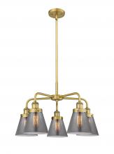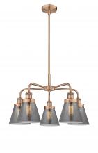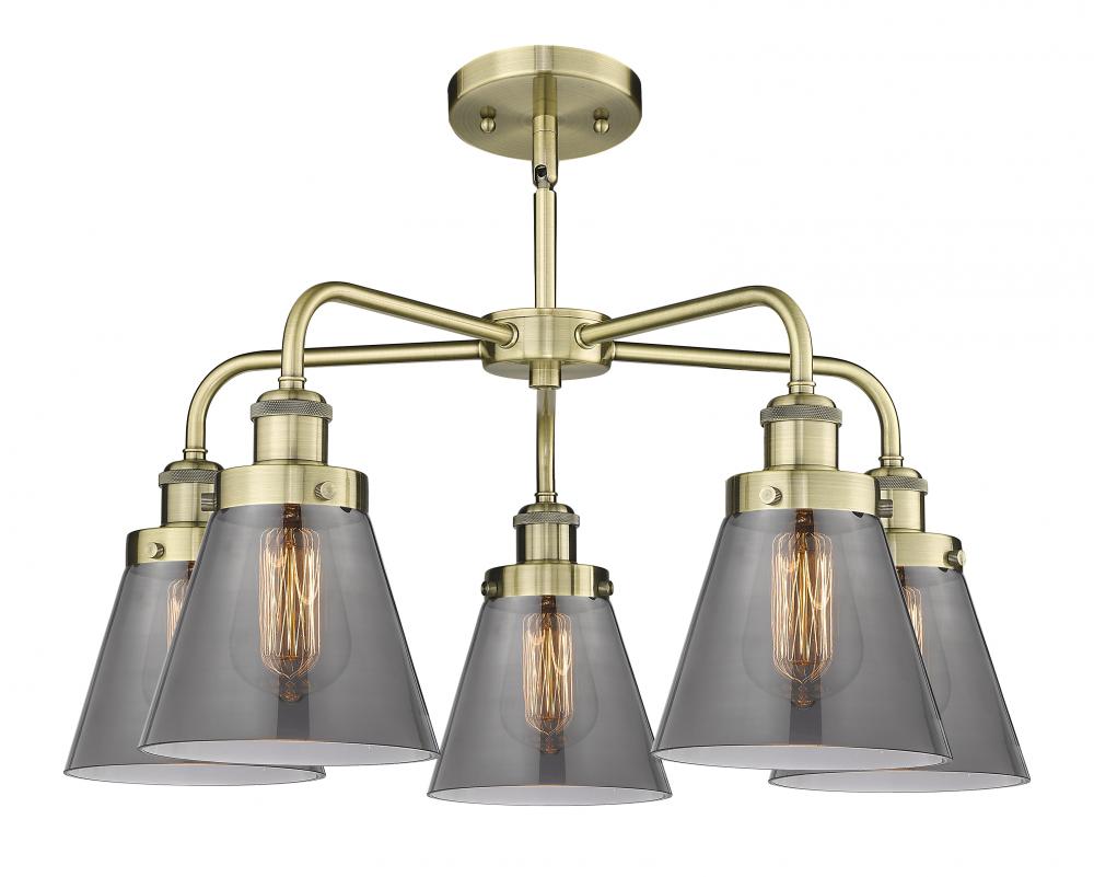 Cone - 5 Light - 25 inch - Antique Brass - Light Smoke Shade - Chandelier