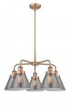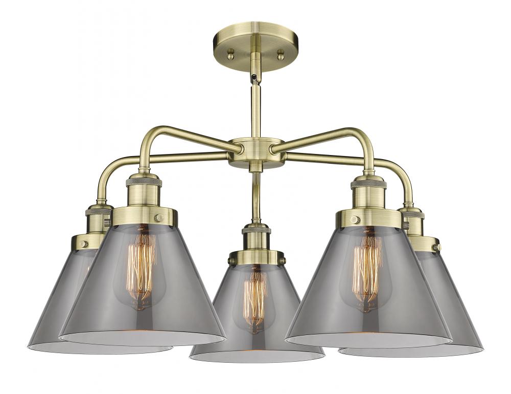 Cone - 5 Light - 26 inch - Antique Brass - Light Smoke Shade - Chandelier
