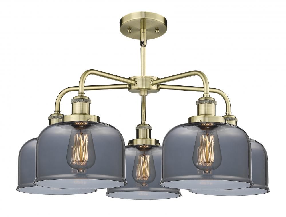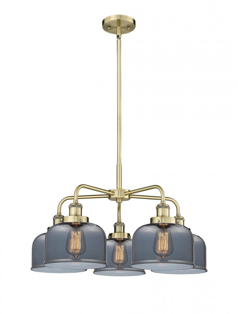 Cone - 5 Light - 26 inch - Antique Brass - Light Smoke Shade - Chandelier