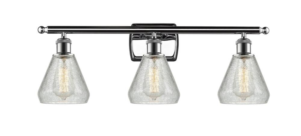 Conesus - 3 Light - 26 inch - Polished Chrome - Clear Crackle Shade - Bath Vanity Light