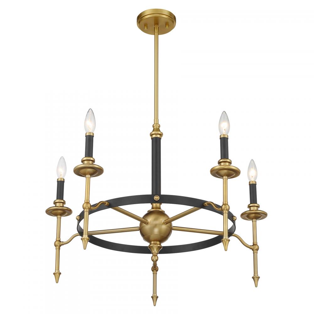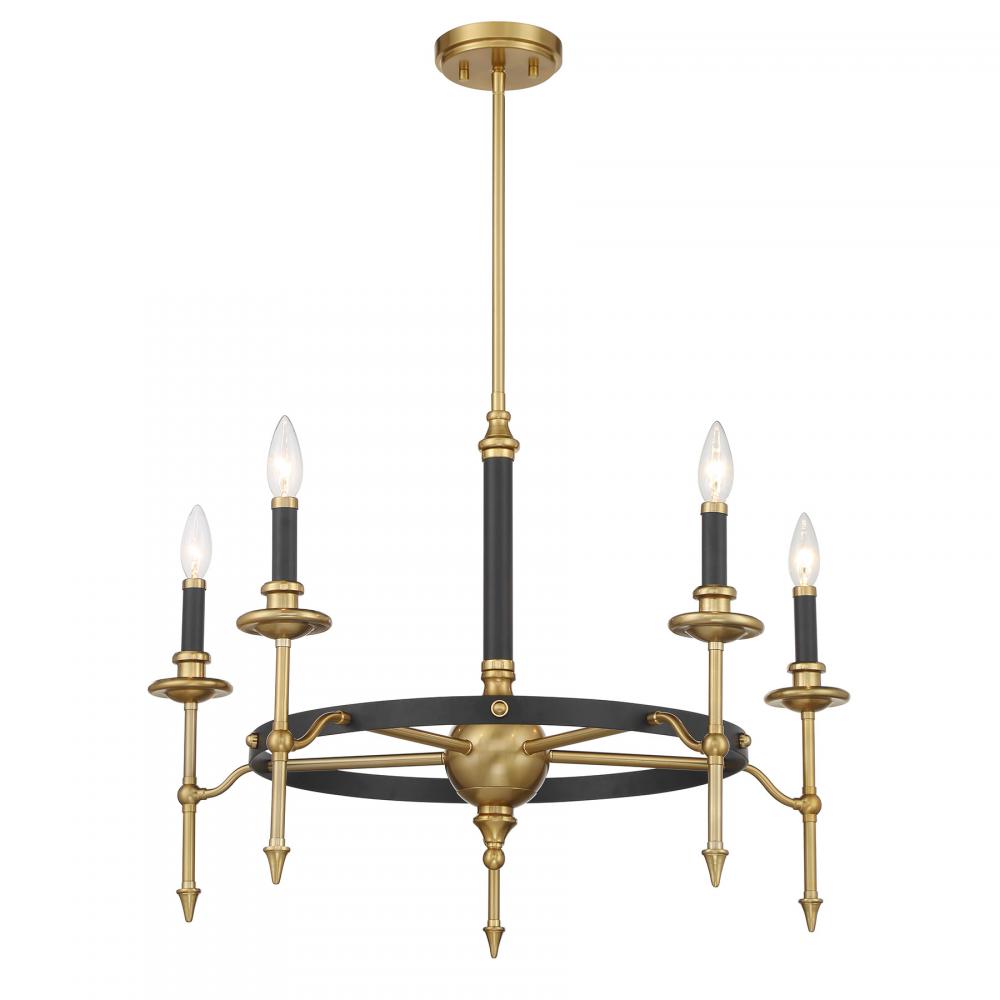 Consulate 5-Light Chandelier in Matte Black and Warm Brass