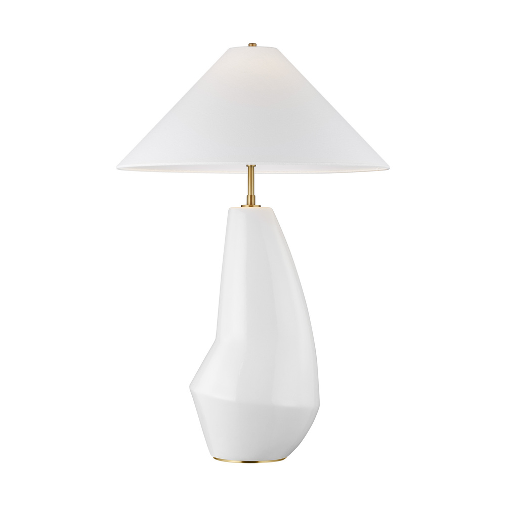 The Contour table lamp from Kelly by Kelly Wearstler is crafted of ceramic with an organic form and matte glaze in an Artic or Coal finish. A burnished brass base and white linen shade balance this relaxed design. The Contour one light table lamp in arctic white is the perfect way to achieve your desired fashion or functional needs in your home.