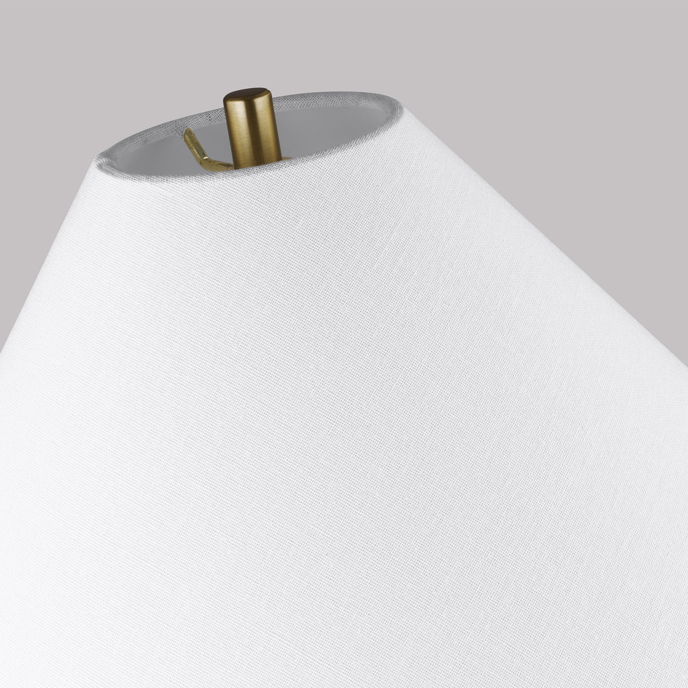 Crafted of ceramic with an organic form and matte glaze in an Artic or Coal finish. A burnished brass base and white linen shade balance this relaxed design.
