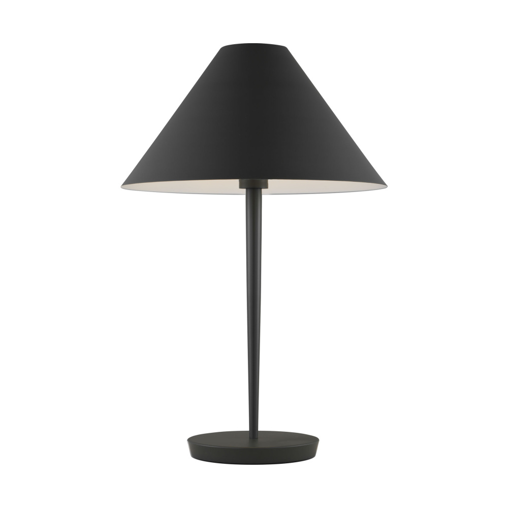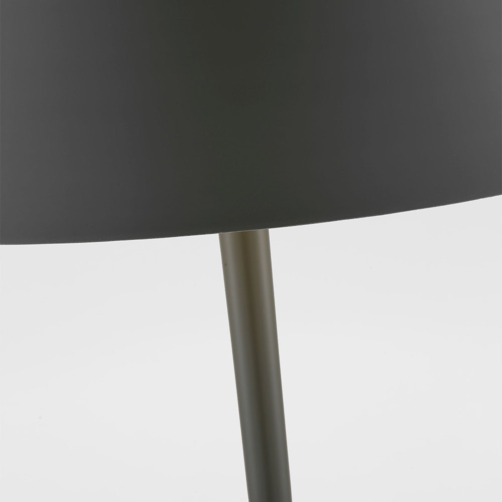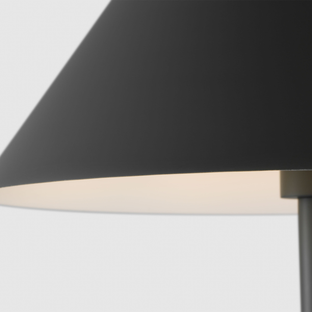 The closed-top conical metal shade is harmoniously completed by the stem’s unique and subtle reverse-taper shape