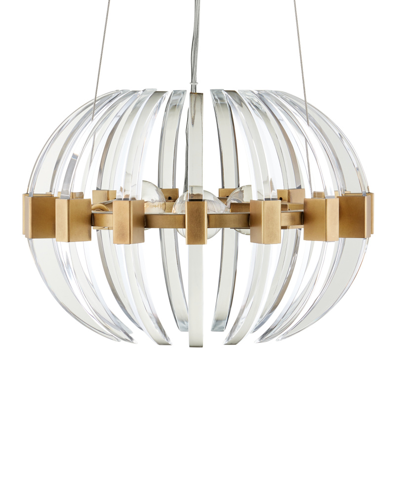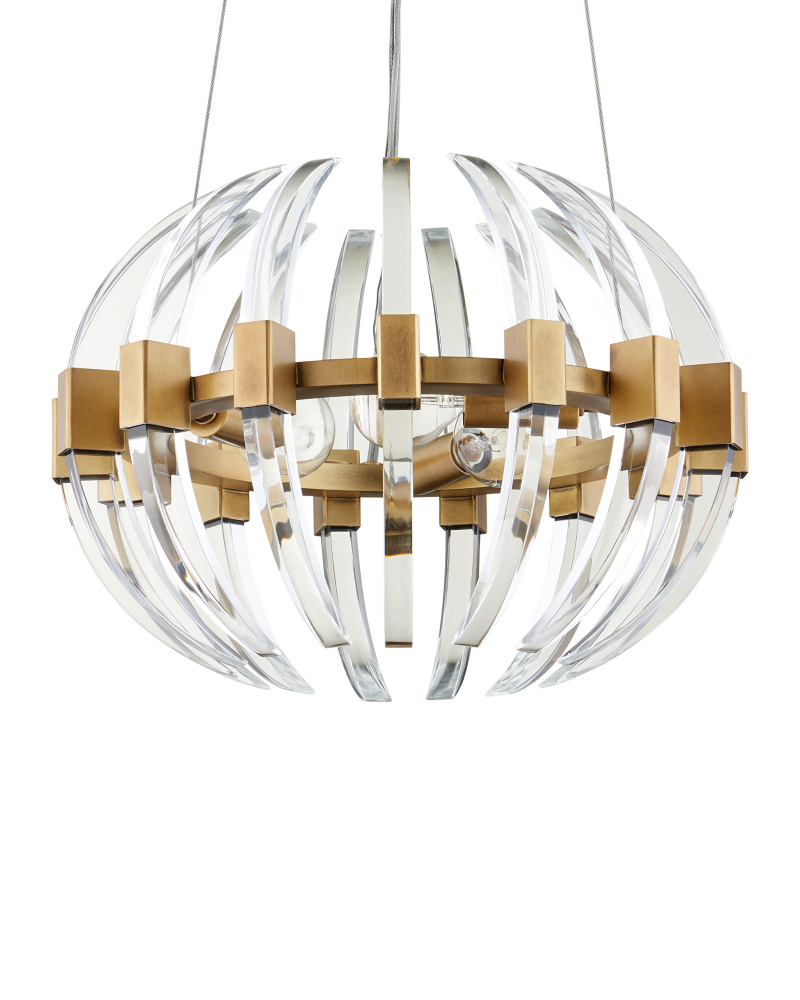The Coquette Small Chandelier is a modern iteration of Art Deco artistry made of slices of optic crystal and metal in an antique brass finish. The crystal blades that line the brass chandelier read like half-moon slivers to bring the fixture a warm-cool hint of glamour. Adjustable from 14" to 150" with use of included chain/rod kit/cable. If your space calls for a longer drop, additional chain/rods/cable is available for purchase.