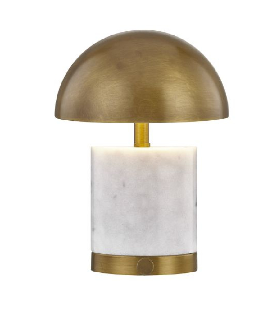 The fabulous half-moon style design of this Cora LED table lamp from Coco & Dash is sure to draw attention, no matter where you use it! A plated brass shade and detailing mixes nicely with a marble feature on the body to create classic chic. It’s portable and rechargeable, too! Because this lamp has a flat back, we recommend using it in a bookshelf or atop a table that is next to a wall. This lamp is 10" in height, 7.125" in width and extends 3.5" from the wall. It gives off 240 lumens at a 3000K color temperature.