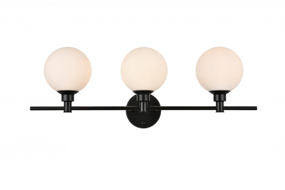 Elegant LD7317W28BLK - Cordelia 3 light Black and frosted white Bath Sconce