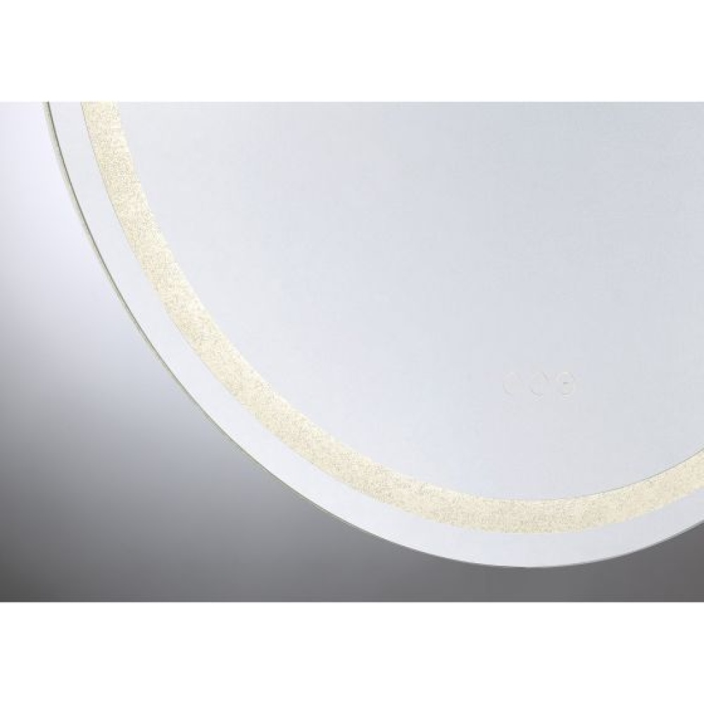 Lovers of glamorous style will find their perfect match in this Savoy House Cordova round front lit LED mirror! Marvel at the thousands of tiny crushed crystals embedded in the frame that add sparkle to the space, whether the light is on or off, and find convenient controls right at your fingertips. Choose from three different color temperatures - 3000K, 4500K and 6500K - to get the glow that is right for you. Use the stepless dimmer to increase or decrease the brightness. Keep things clear with the defogger, which shuts off automatically after one hour. Cordova even remembers and recalls the last used illumination setting! This mirror is free from lead and copper, comes with mounting hardware and is backed by a 3-year warranty. Uses 41 watts to deliver 816 lumens at a CRI of 90+. Suitable for damp locations. Cordova is 32" in diameter and extends 1.88" from the wall.
