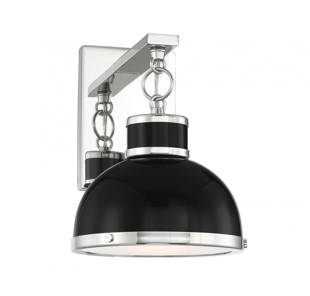 Corning 1-Light Wall Sconce in Matte Black with Polished Nickel Accents