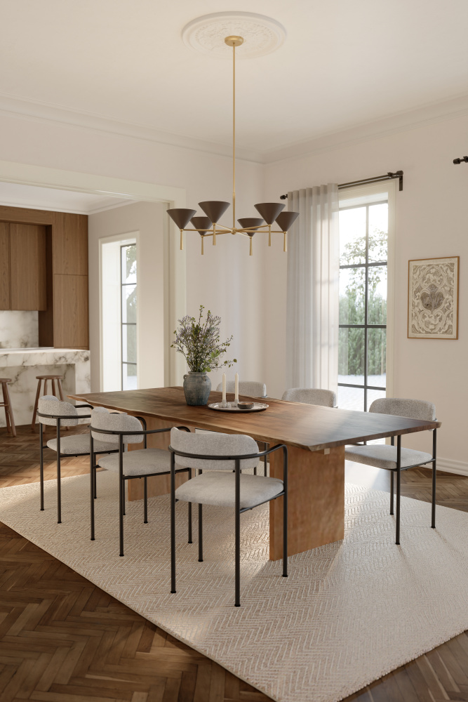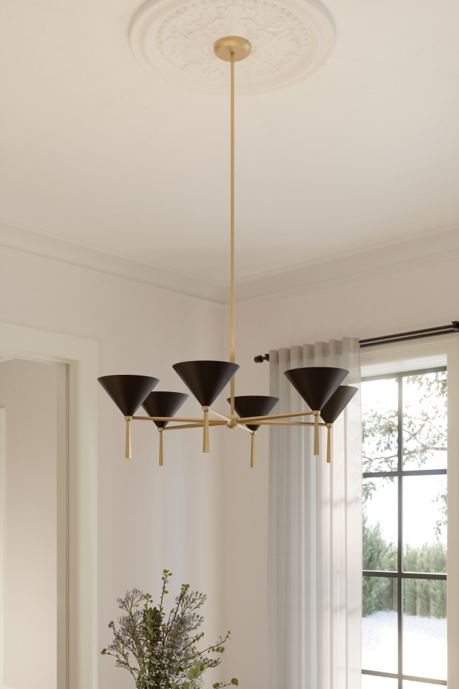 The Cortan chandelier blends transitional lines with warm, inviting illumination.