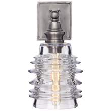 Covington Sconce in Antique-Burnished Brass with Clear Ribbed Wide Glass