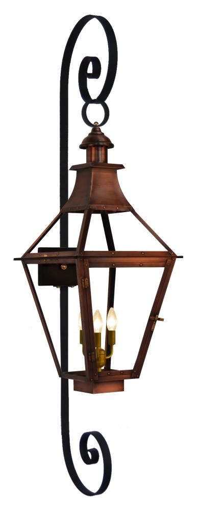 Size 33 Electric Copper Lantern, 3 candelabra base sockets, with Top Scroll, Reverse Bottom Scroll
