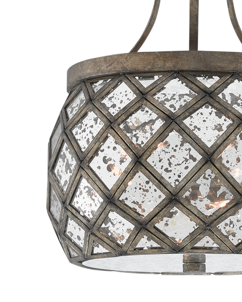 Crisscrossing wires twist and turn in a svelte diamond pattern to place the shade of the four-light Crisscross Pendant Semi-Flush fixture at the intersection of vintage style and modern taste. The combination of French Black and Pyrite Bronze finishes accentuates the skills our artisans have achieved with hand-finishing. We also offer this pendant in a gold leaf finish.