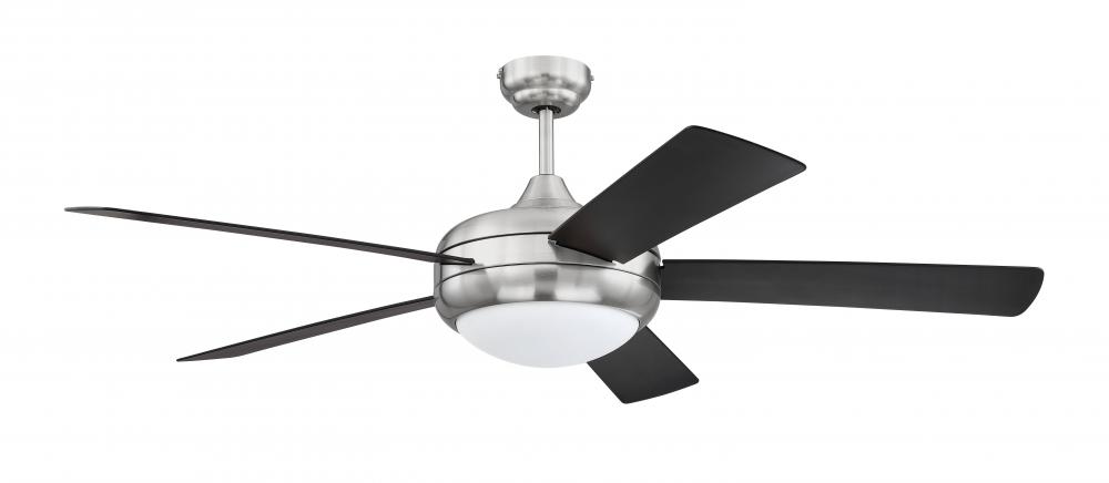 Offering a modern twist on classic ceiling fan design, the Cronus powered by a 3-speed, heavy-duty reversible motor with included control satisfies with efficient air movement, inviting dimmable LED overhead lighting with optional cover, and striking contemporary form. Flat Black is damp rated for indoor/outdoor use. Brushed Polished Nickel is indoor only.