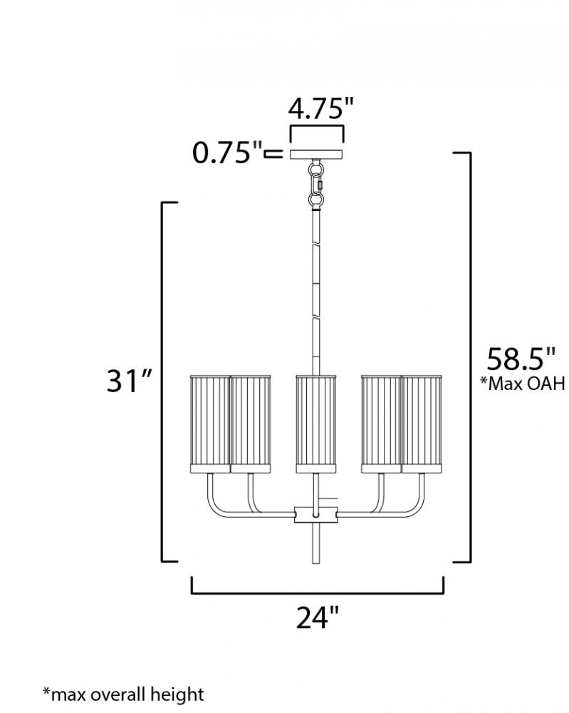Simple, yet stylish, this minimal chandelier comes in your choice of Satin Brass or Matte Black bringing contemporary appeal. Clear Ribbed glass shades are fitted with rings in a coordinating color to complete the look.