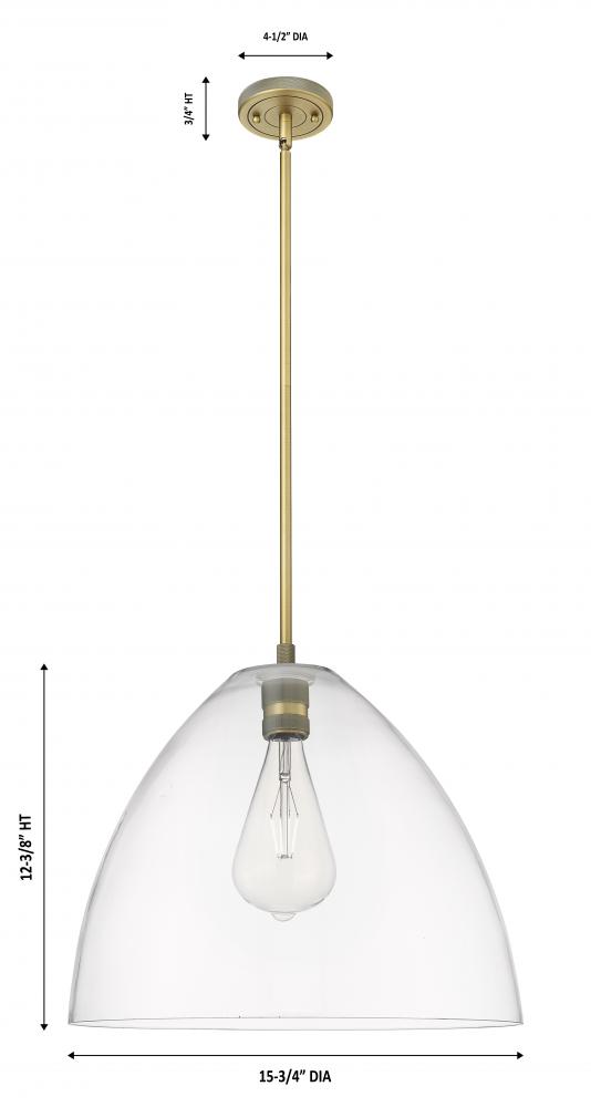 Crown Point - 1 Light - 16 inch - Brushed Brass - Clear Shade - Pendant