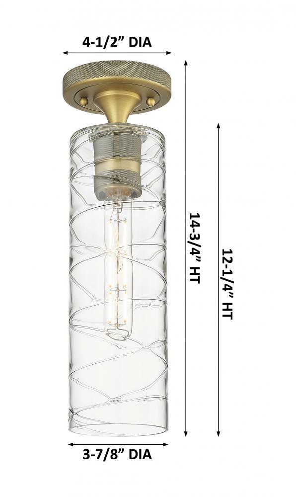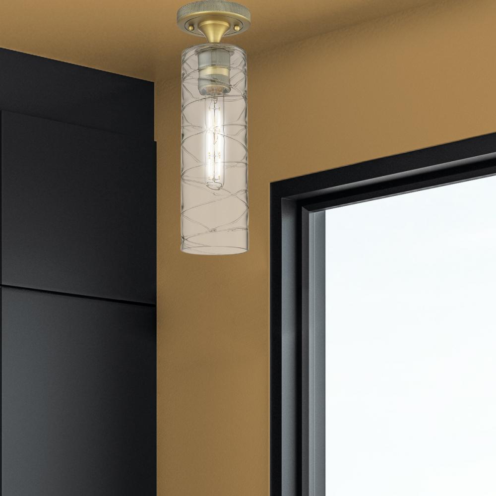 Crown Point - 1 Light - 5 inch - Brushed Brass - Deco Swirl Shade - Flush Mount