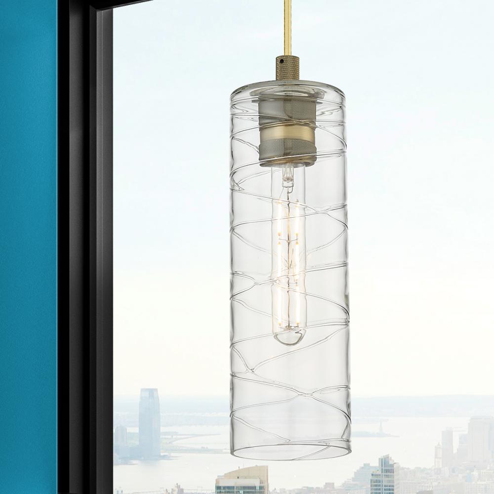 Crown Point - 1 Light - 5 inch - Brushed Brass - Deco Swirl Shade - Pendant