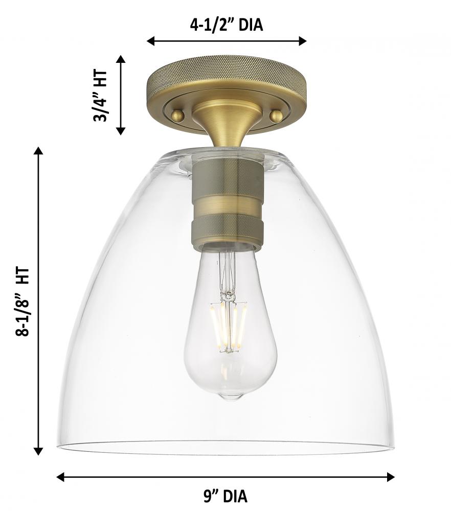 Crown Point - 1 Light - 9 inch - Brushed Brass - Clear Shade - Flush Mount