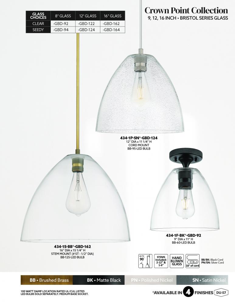 Details abound in the Crown Point Collection with an industrial take on modern sophistication. This stunning line of fixtures features cylindrical glass set in an updated restoration style frame with intricate knurling detail on the sockets, canopy, and fi
