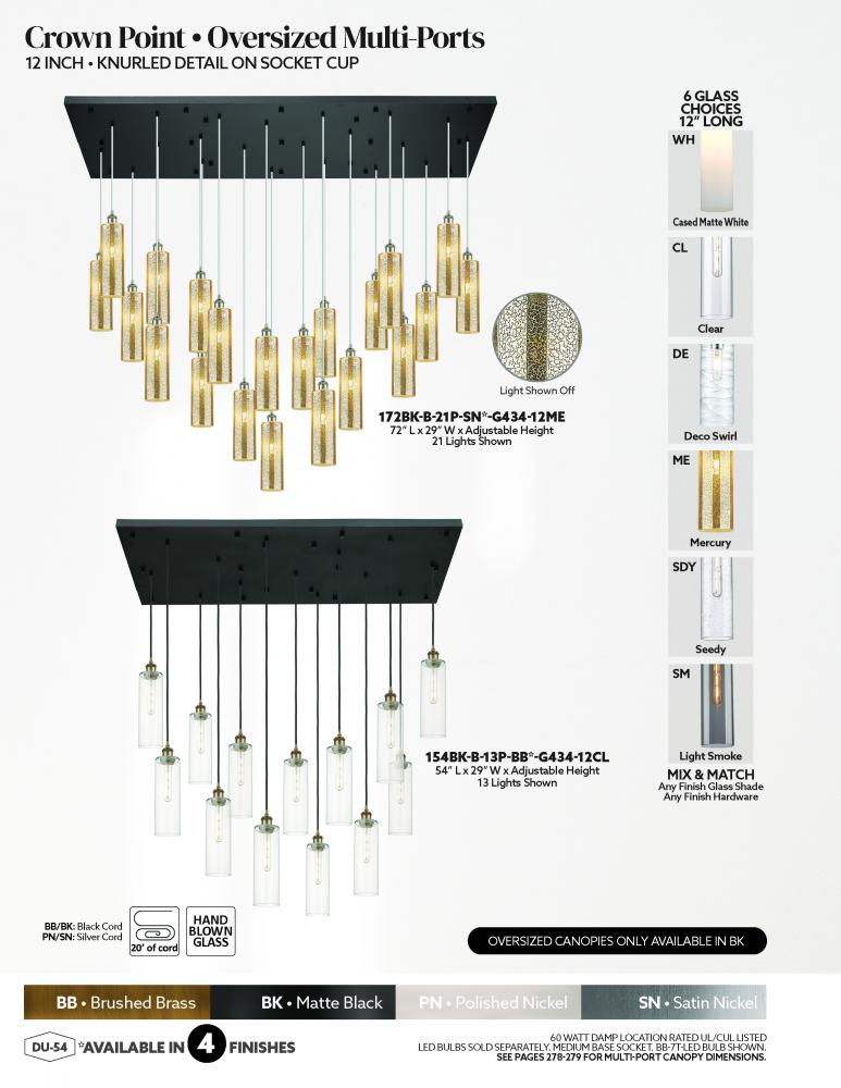 Crown Point - 13 Light - 54 inch - Brushed Brass - Multi Pendant