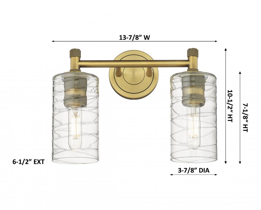 Crown Point - 2 Light - 14 inch - Brushed Brass - Deco Swirl Shade - Bath Vanity Light