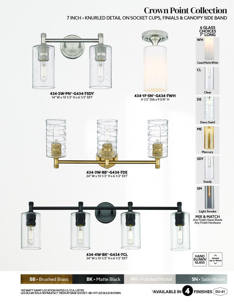 Details abound in the Crown Point Collection with an industrial take on modern sophistication. This stunning line of fixtures features cylindrical glass set in an updated restoration style frame with intricate knurling detail on the sockets, canopy, and fi