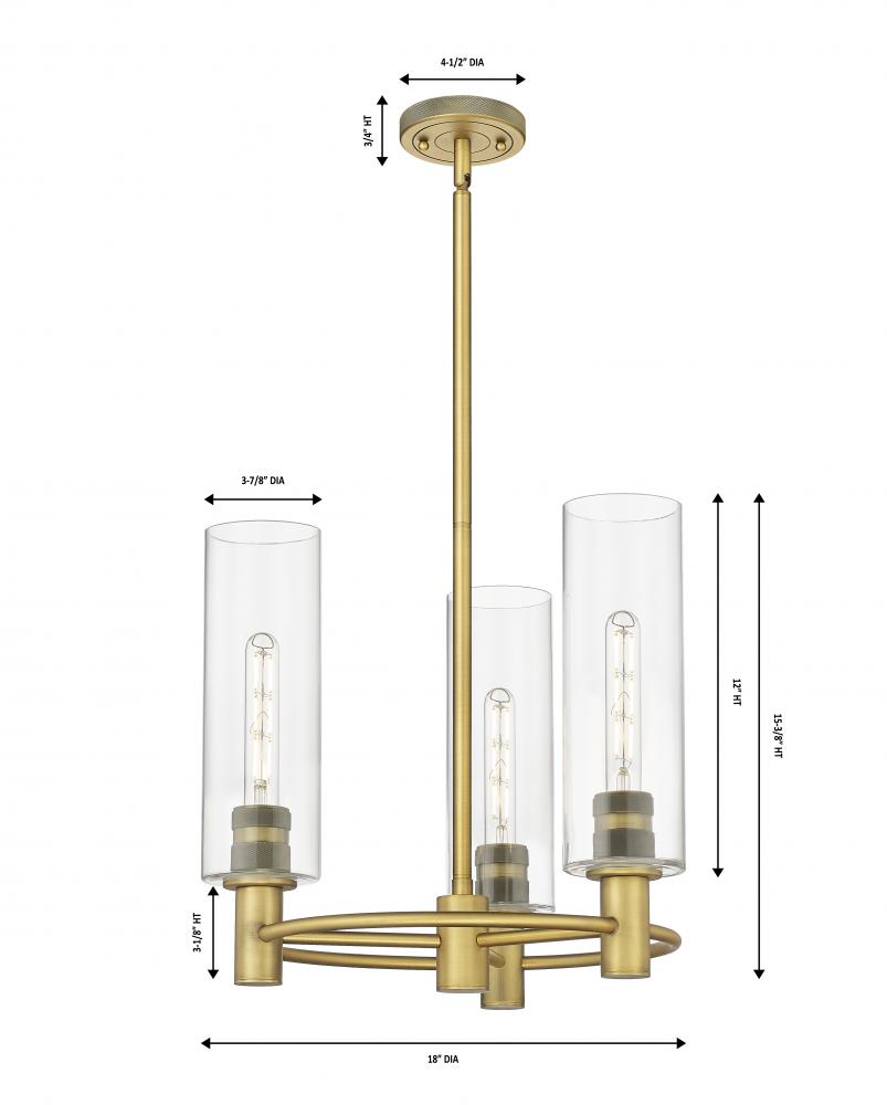 Crown Point - 3 Light - 18 inch - Brushed Brass - Clear Shade - Pendant