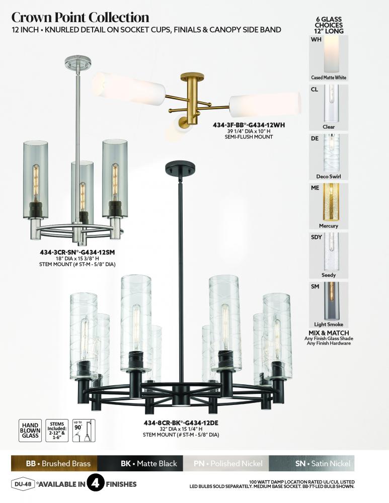 Details abound in the Crown Point Collection with an industrial take on modern sophistication. This stunning line of fixtures features cylindrical glass set in an updated restoration style frame with intricate knurling detail on the sockets, canopy, and fi