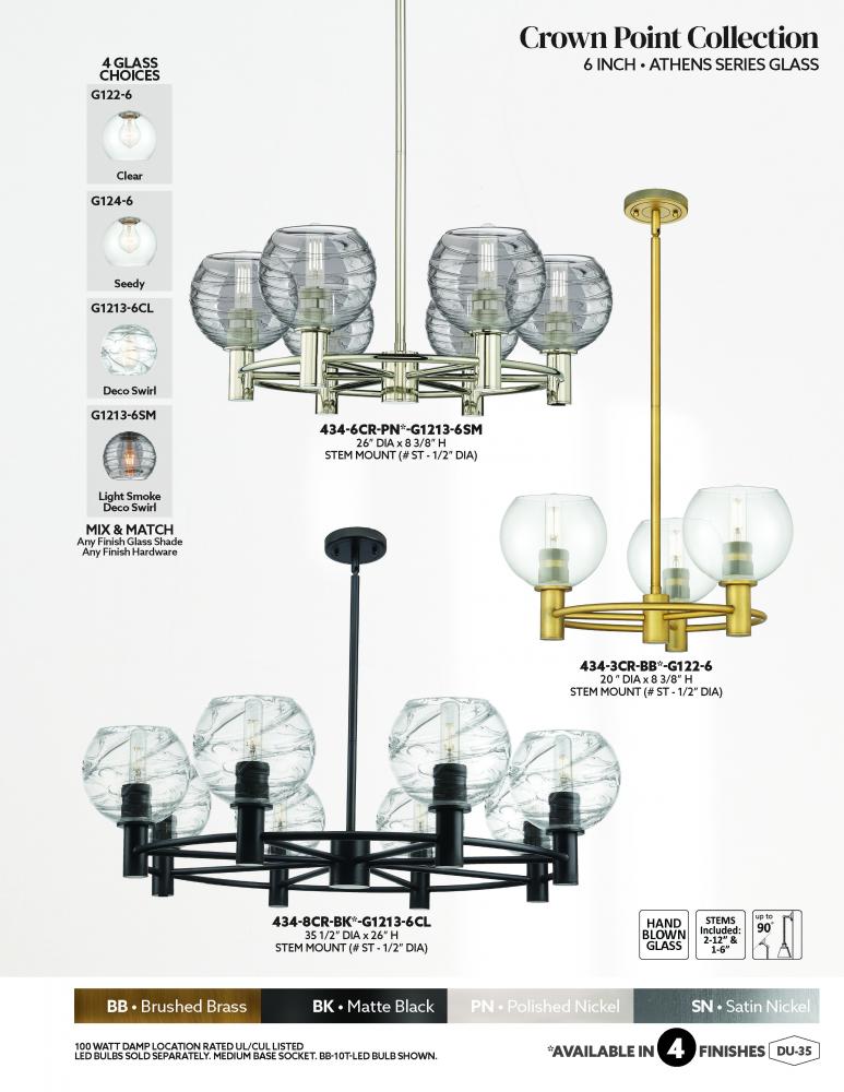Details abound in the Crown Point Collection with an industrial take on modern sophistication. This stunning line of fixtures features cylindrical glass set in an updated restoration style frame with intricate knurling detail on the sockets, canopy, and fi