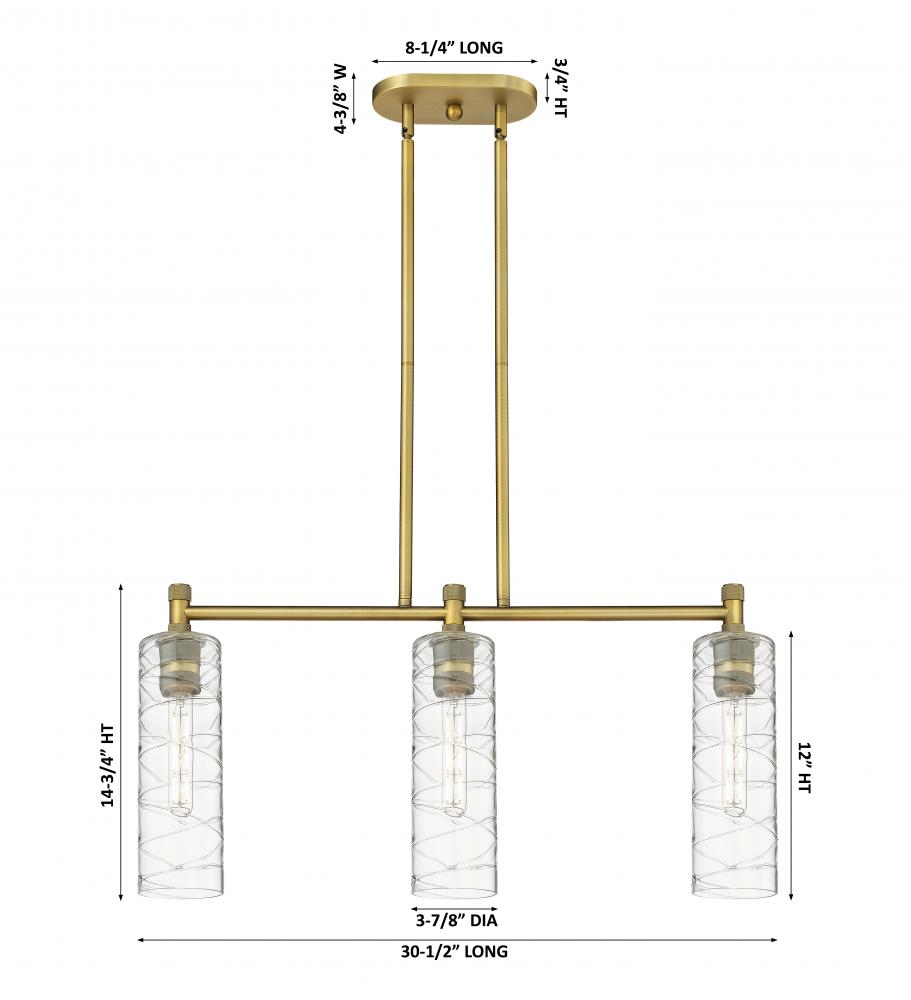 Crown Point - 3 Light - 31 inch - Brushed Brass - Deco Swirl Shade - Island Light