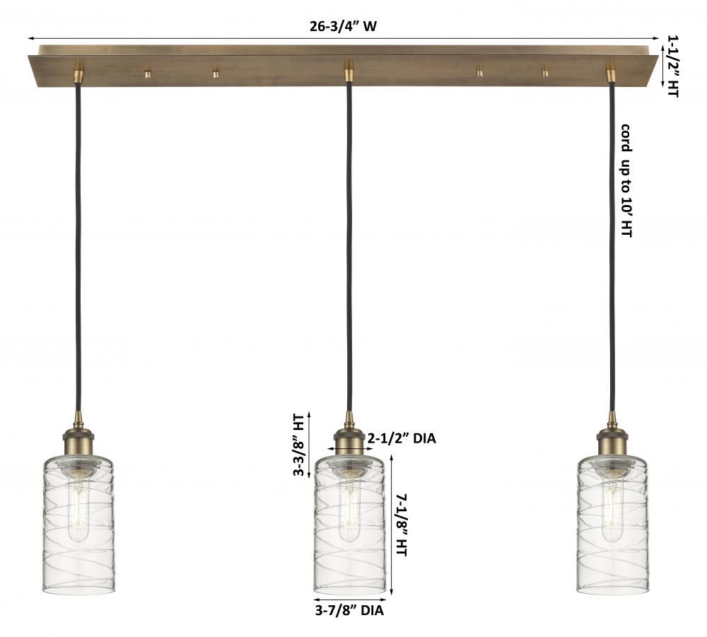 Each pendant comes with a 10-foot cord that can be trimmed to any desired length. This allows you to hang the shades at either the same height or different staggered heights.