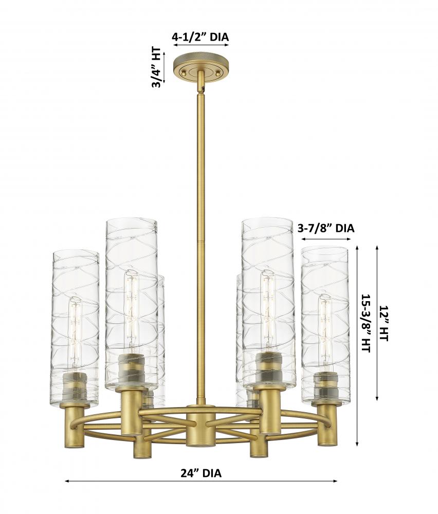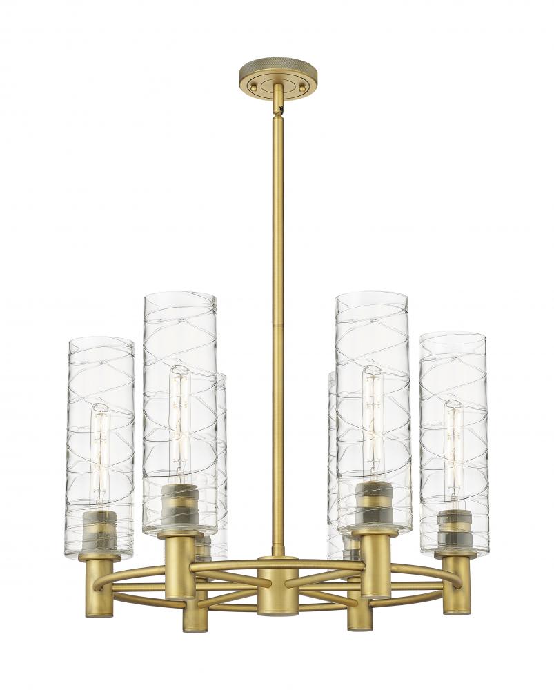 Crown Point - 6 Light - 24 inch - Brushed Brass - Deco Swirl Shade - Chandelier