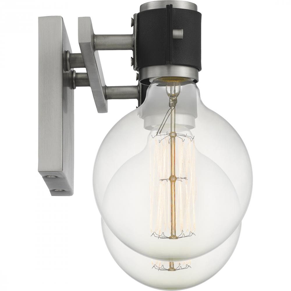 Give your bathroom a touch of flair with the Curie collection. Inspired by industrial brackets, this fixture is unique, yet subtle. The Curie comes in an Antique Nickel finish with Earth Black accents. The exposed light bulb allows for maximum illumination