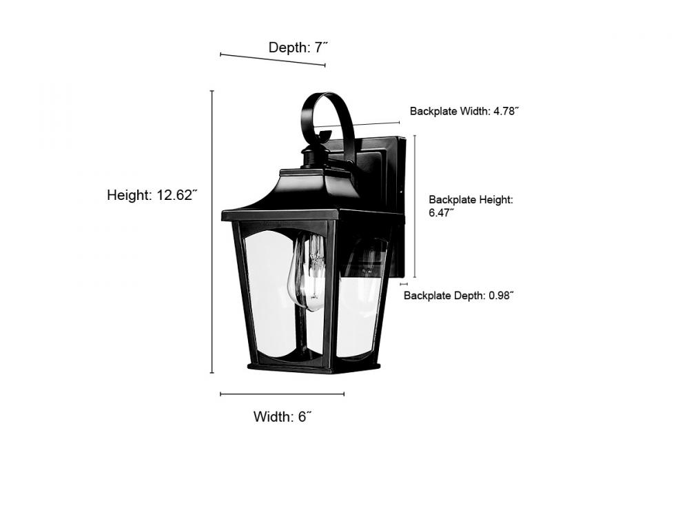 This outdoor wall sconce is 6 in. width x 12.62 in. height