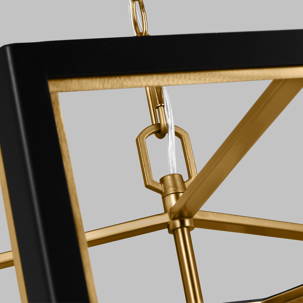 The Curt Three Light Lantern by Alexa Hampton is a modern take on an antique lantern. Elegantly crafted of steel with a Matte White or Midnight Black finish and accented with golden details. A stunning Hexagon shaped hub adds drama to the design.