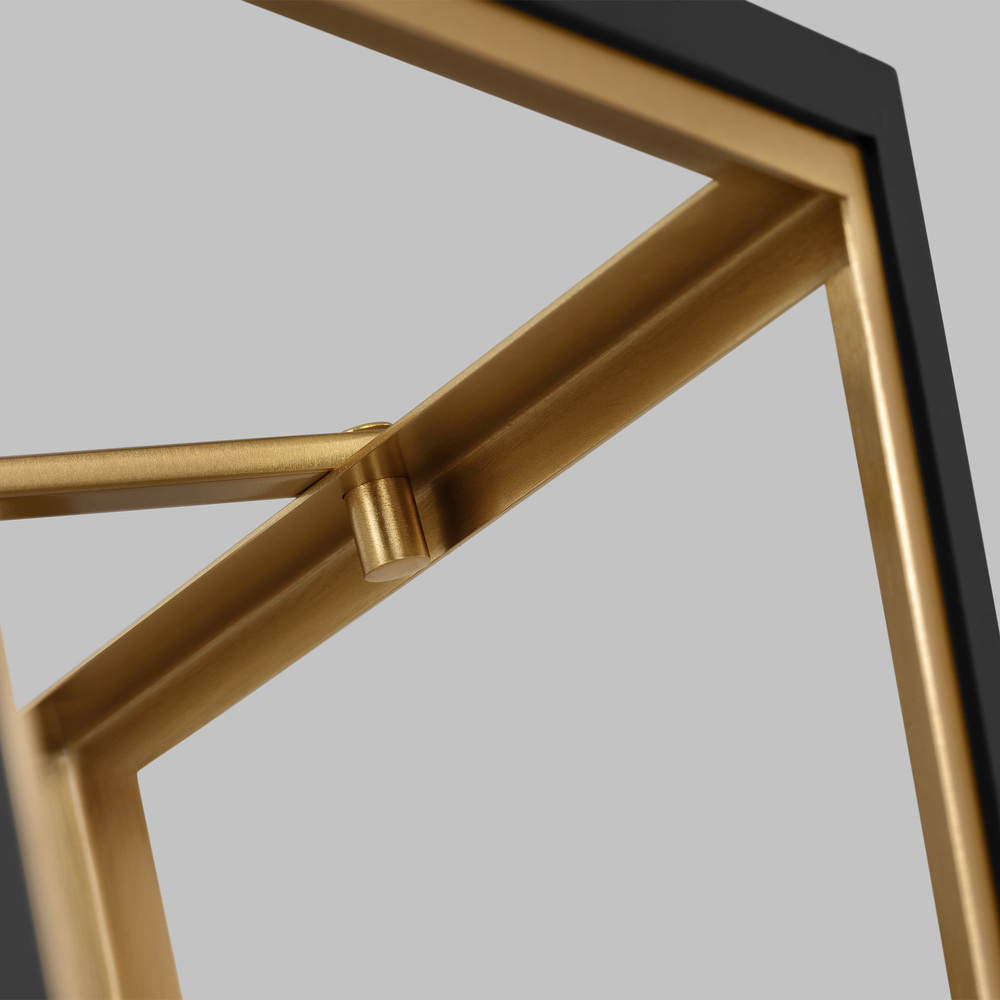 The Curt Three Light Lantern by Alexa Hampton is a modern take on an antique lantern. Elegantly crafted of steel with a Matte White or Midnight Black finish and accented with golden details. A stunning Hexagon shaped hub adds drama to the design.