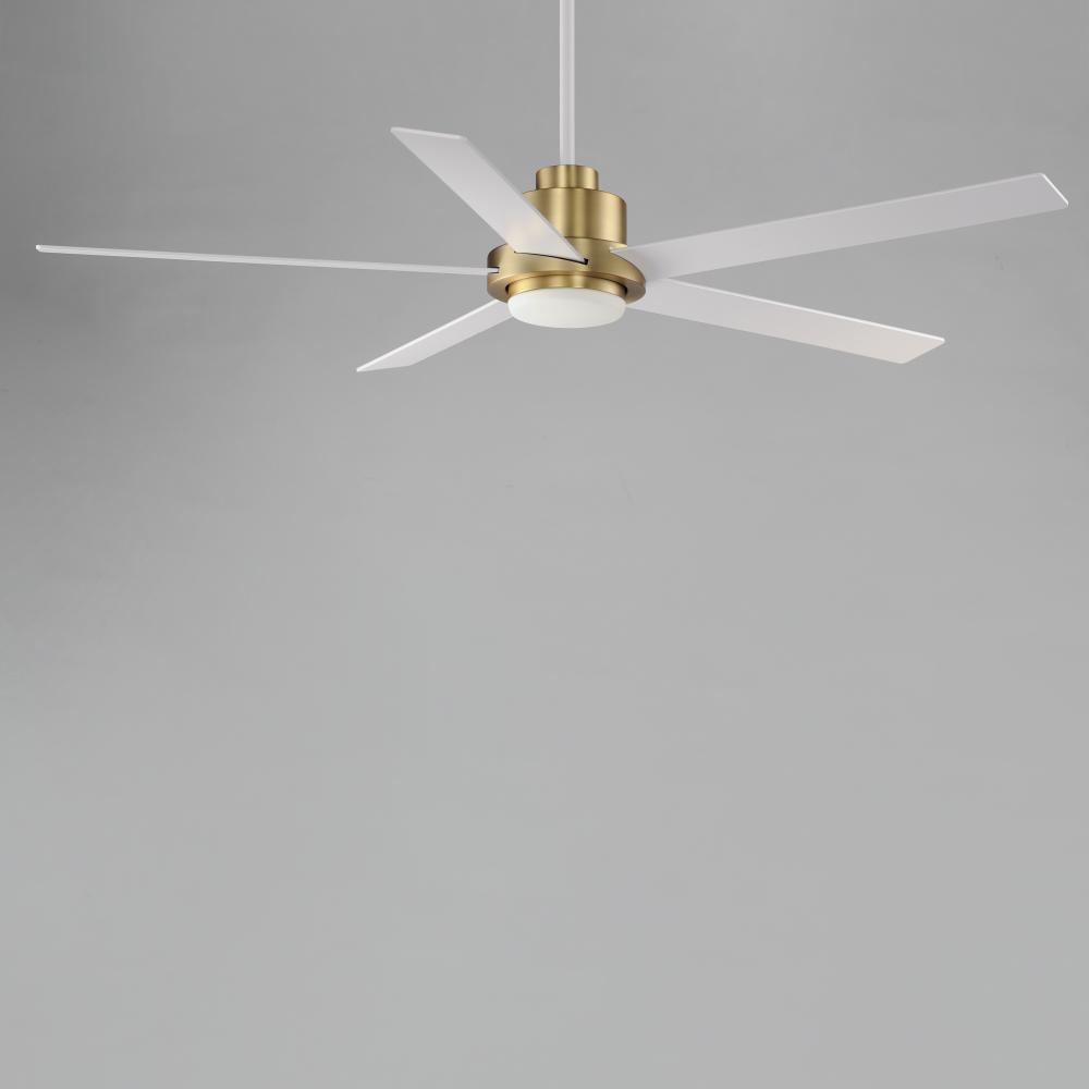 For larger spaces, a larger blade span is sometimes required. This minimalist design is pure and simple. Elongated ABS blades span 60 inches and finished in Matte White contrasting the motor housing's Natural Aged Brass finish. The two tone finish make