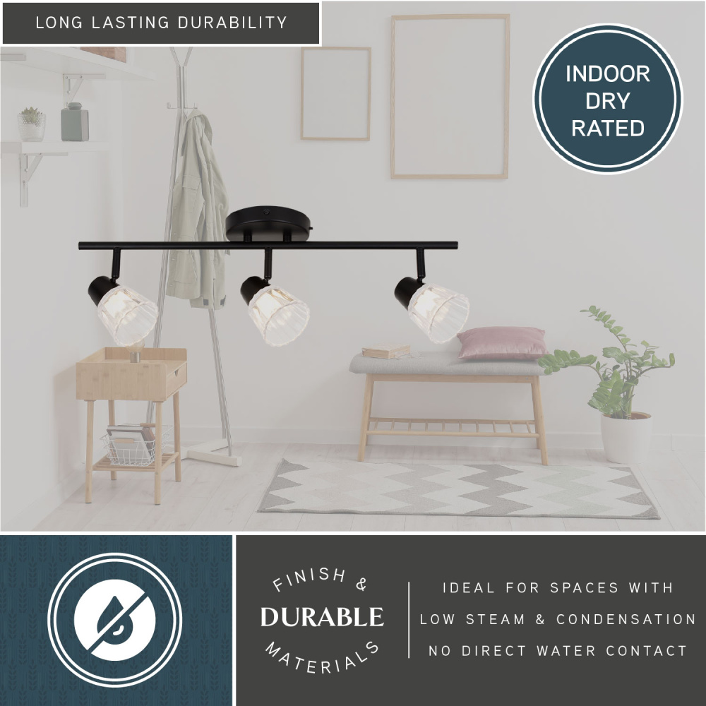 Update your home's lighting with the clean, modern lines of the Dalton 23-inch directional ceiling light. Featuring stylish fluted glass shades and a sleek matte black finish, this fixture adds a touch of sophistication to any decor. The adjustable track heads allow you to direct light where you need it most, making it perfect for bedrooms, hallways, kitchens, or even home offices. Its versatile design complements contemporary, transitional, and even minimalist interiors.