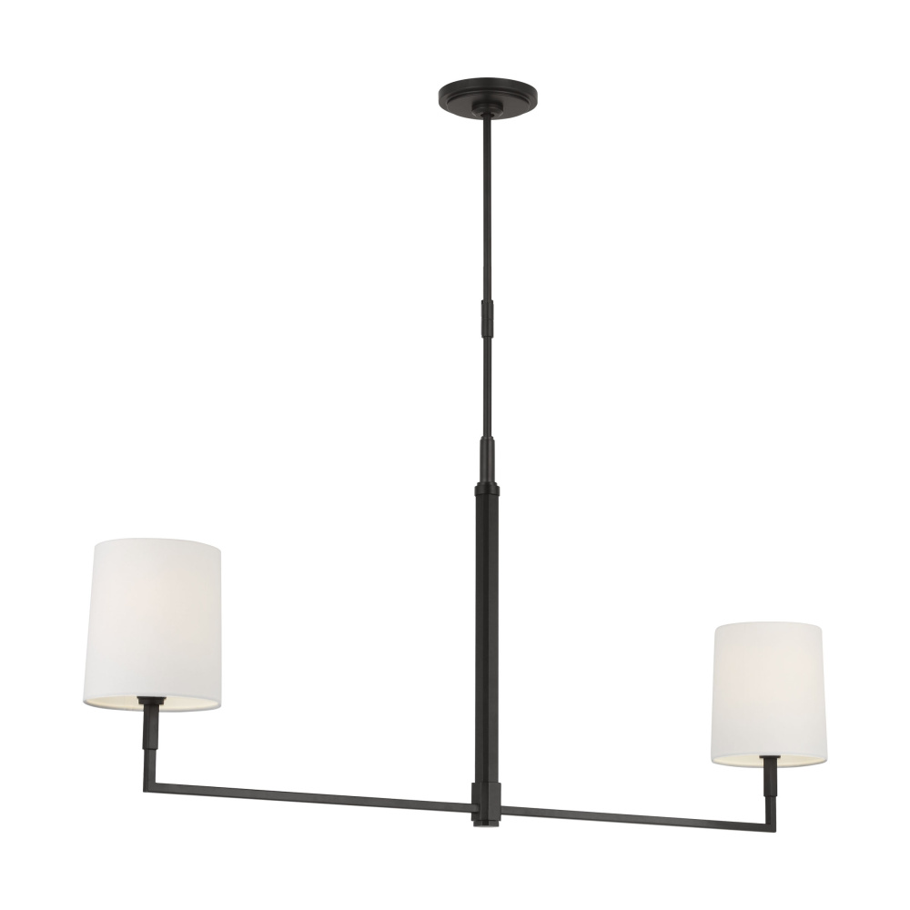 Crafted with Steel in a Aged Iron finish with white linen fabric shades