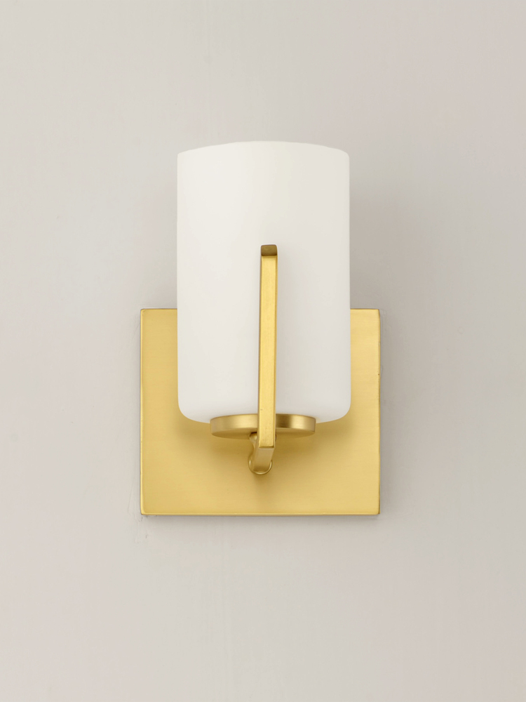 Inspired by the Modernist architect Edward Dart, this collection features straight line frames finished in Satin Brass, Satin Nickel, or Matte Black that support Satin White glass cylinders for a clean and modern look. The frames' ends turn up before t