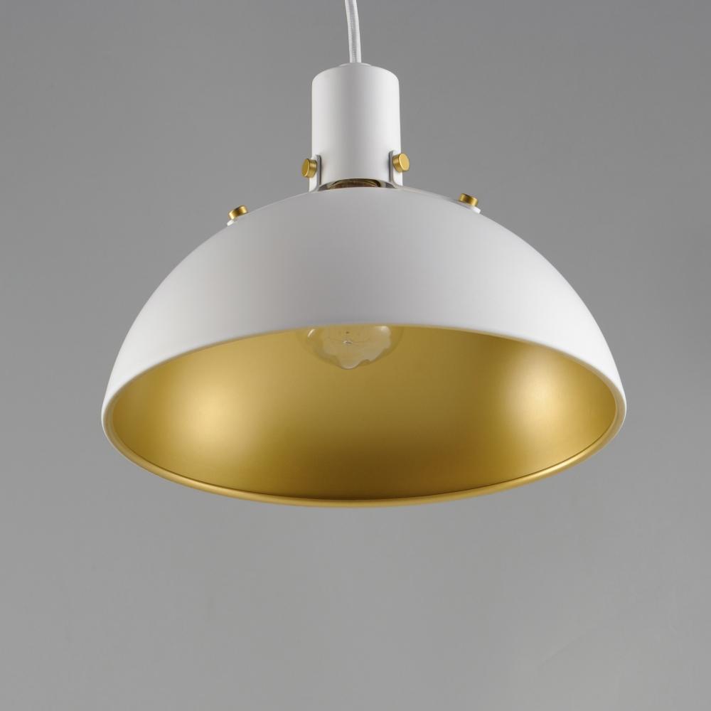 Sockets are suspended above a metal spun dome in your choice of Black or White with Gold accents or Satin Nickel with Black accents. A clean and simple approach to modern or transitional lighting, the opening allows light to shine through the opening atop