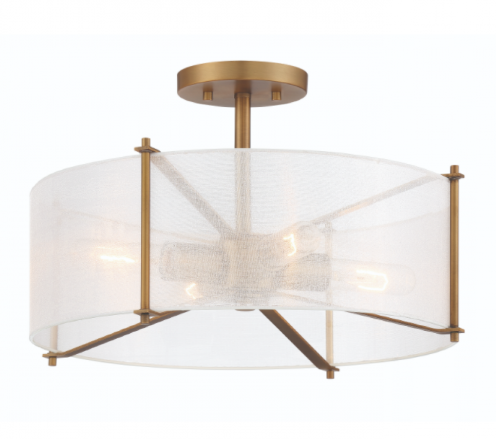 Old Satin Brass 4 Light Semi Flush with organza fabric is part of the Daybreak collection