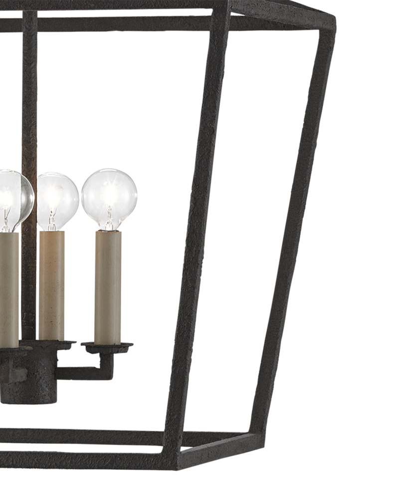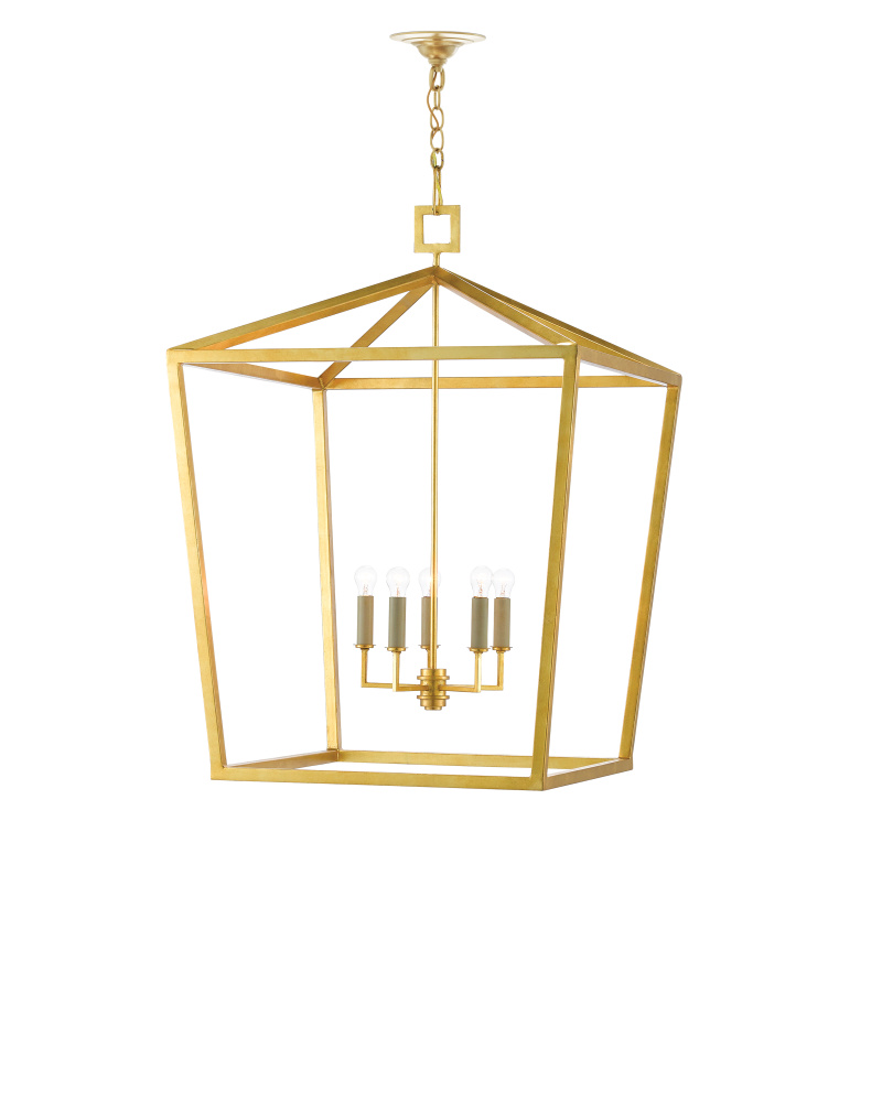 The Denison Gold Grande Lantern is a hammered wrought-iron fixture in a contemporary gold leaf finish. The classic lantern shape has stood the test of time to make it one of our most popular offerings. A design element of note is the square that fastens the lantern to the chain. Adjustable from 53" to 123" with use of included chain/rod kit/cable. If your space calls for a longer drop, additional chain/rods/cable is available for purchase.