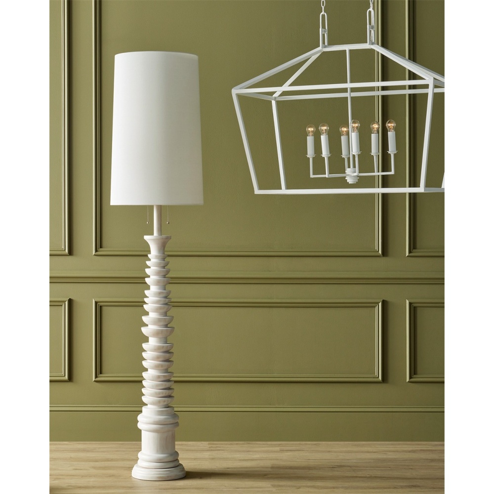 The Denison White Rectangular Chandelier is a hammered wrought-iron fixture in a gesso white finish. This classic lantern shape has stood the test of time to make it one of our most popular offerings. A refined aspect of the design is the square that fastens the lantern to the chain. The pared-down profile and pale finish on this version makes it perfect for coastal aesthetics. Adjustable from 42" to 110" with use of included chain/rod kit/cable. If your space calls for a longer drop, additional chain/rods/cable is available for purchase.