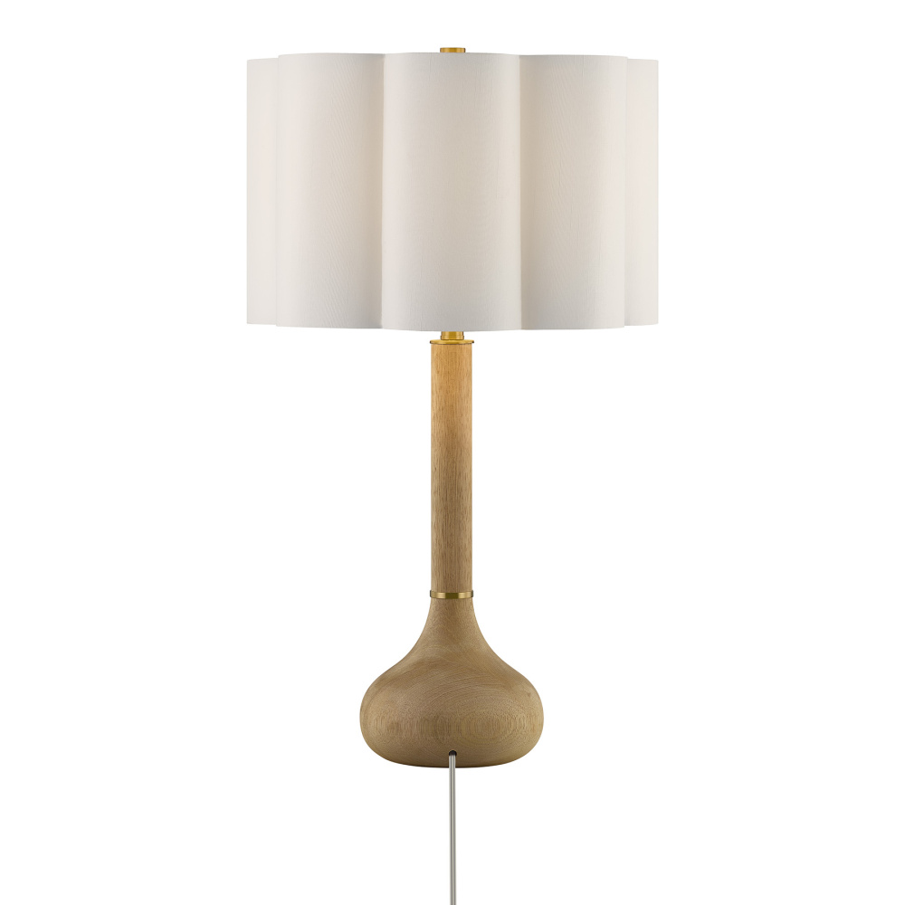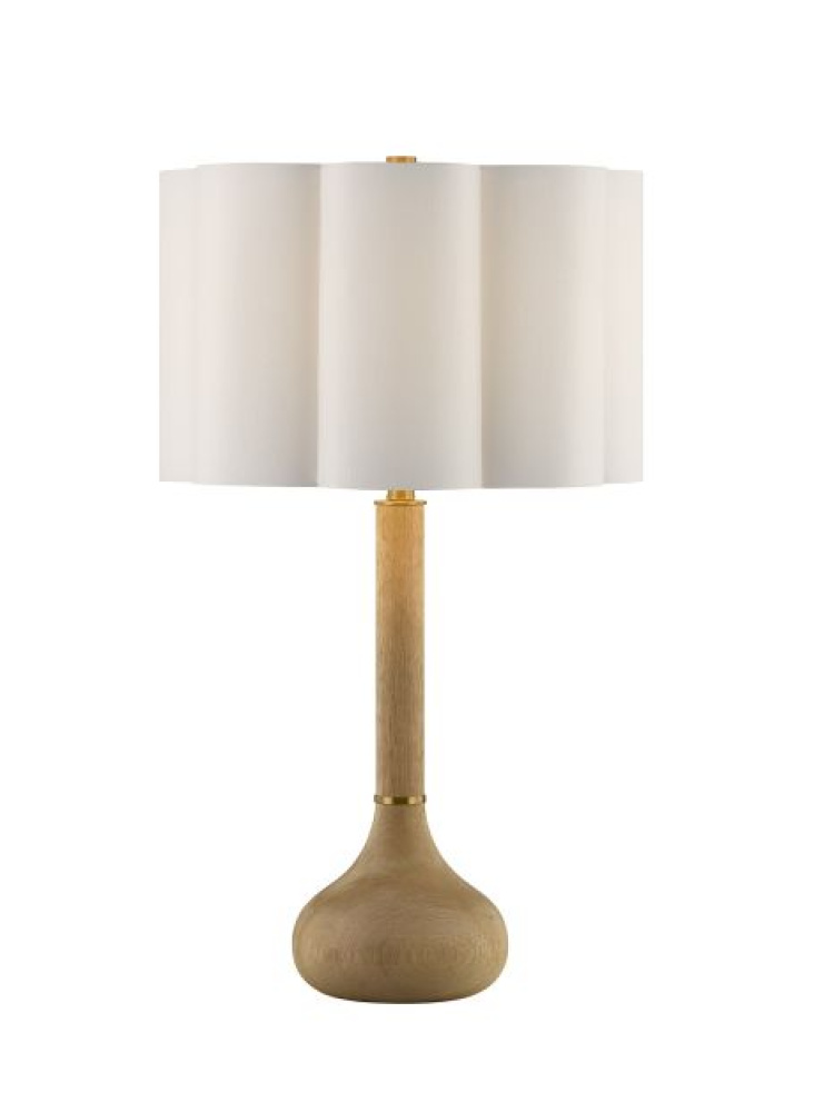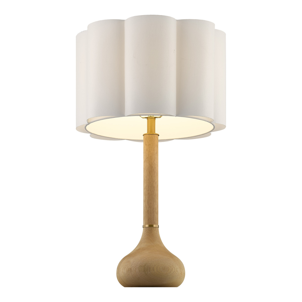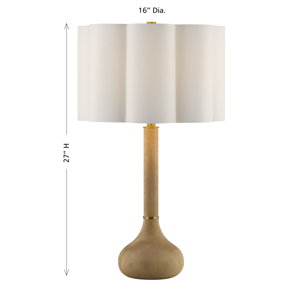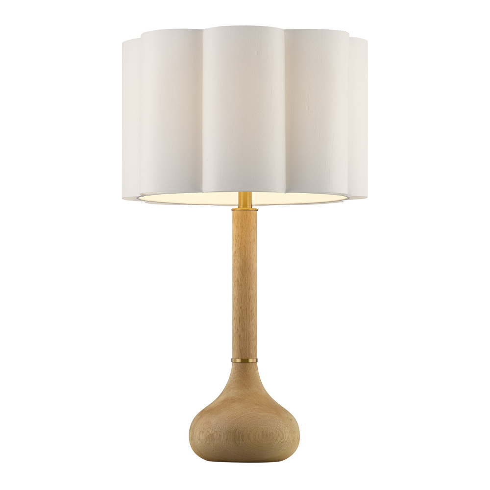 The Savoy House Derby 1-light table lamp was designed by Dann Foley, an award-winning interior designer with a reputation for style, taste and quality. Its gourd-like structure is crafted from mango wood, wears subtle yet thoughtful details finished in Warm Brass and is topped off with a scalloped white fabric shade for a warm and welcoming glow. Derby is 27" in height and 16" in width. It uses one standard size bulb of up to 100 watts. Bulb not included.