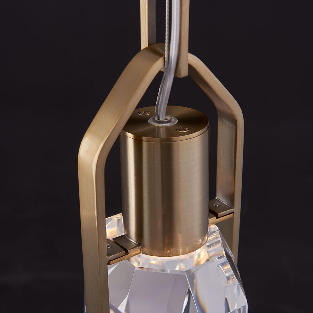 Immerse yourself in the opulent allure and contemporary sophistication of the Diamante Collection. Each lighting piece showcases a magnificent, chunky faceted crystal, gracefully suspended from an ornate, jewelry-inspired chain. With energy-efficient LED lighting and a refined Winter Brass finish, these fixtures infuse any space with a touch of elegance.