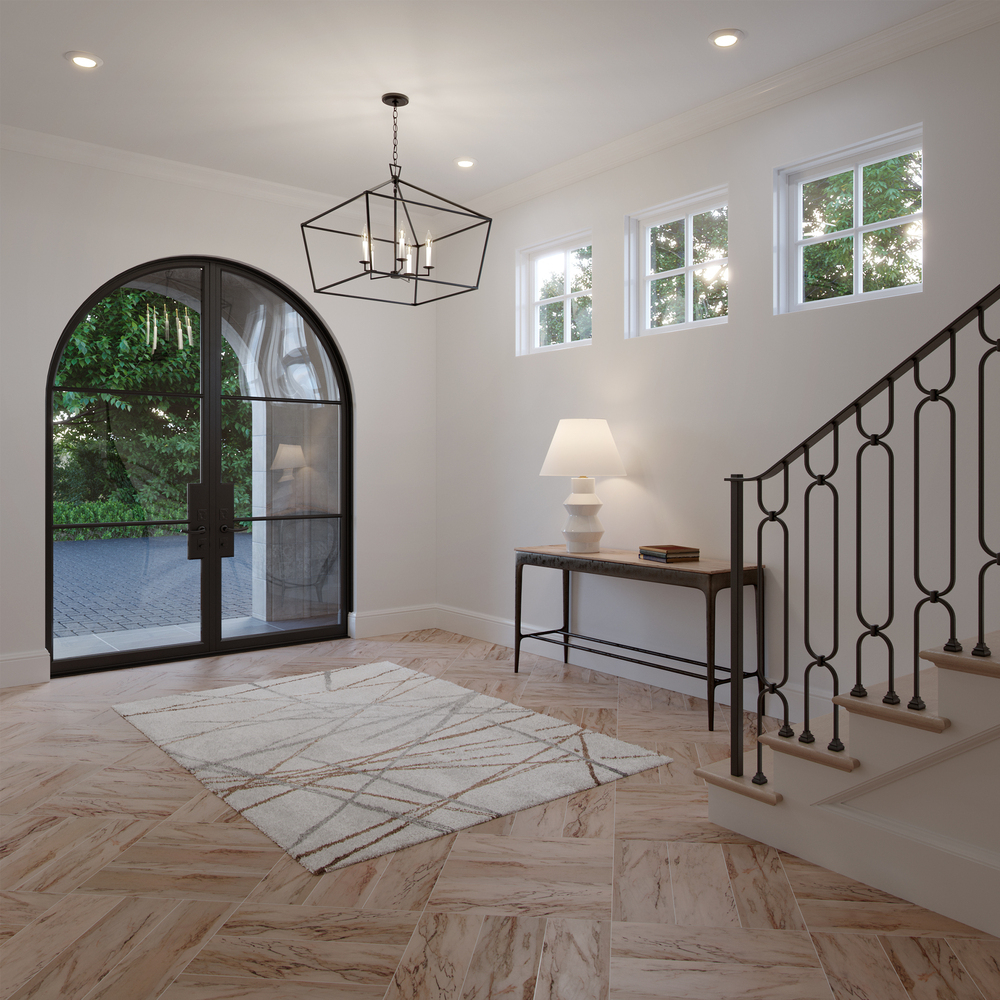 Modern, open-frame fixture with traditional form will complement any dining room, kitchen, or foyer